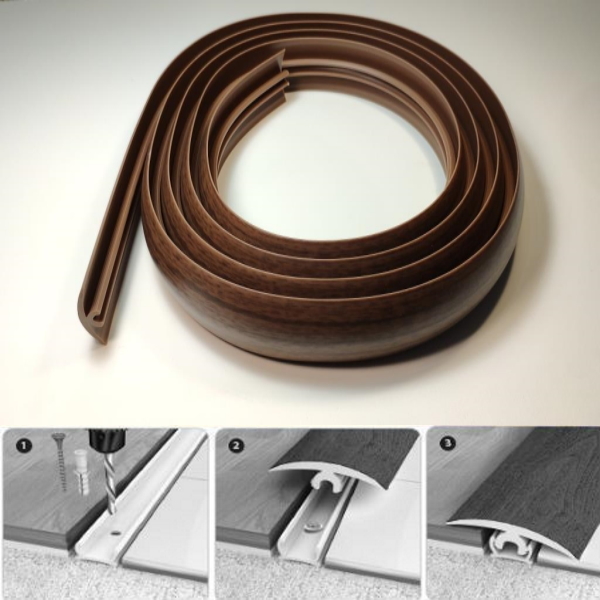 Профиль гибкий (порог) Flex Line Cezar применяется для оформления криволинейных стыков различных напольных покрытий, а также для отделки поверхностей вокруг колонн. Гибкие пороги из однородного термопластичного пластика водостойкие, могут использоваться во влажных помещениях, подходят для неровных полов. Перед установкой профиль нагревают 15 минут в теплой воде (40-60 гр.) и защелкивают в предварительно закрепленный к полу монтажный профиль. Монтажный профиль длиной 1500 мм может быть различной высоты: 12 мм и 15 мм.