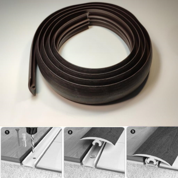 Профиль гибкий (порог) Flex Line Cezar применяется для оформления криволинейных стыков различных напольных покрытий, а также для отделки поверхностей вокруг колонн. Гибкие пороги из однородного термопластичного пластика водостойкие, могут использоваться во влажных помещениях, подходят для неровных полов. Перед установкой профиль нагревают 15 минут в теплой воде (40-60 гр.) и защелкивают в предварительно закрепленный к полу монтажный профиль. Монтажный профиль длиной 1500 мм может быть различной высоты: 12 мм и 15 мм.