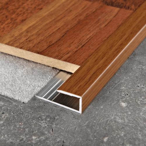 Профиль алюминиевый ламинированный для окантовки торцов напольных покрытий (ламинат, плитка). Устанавливается под напольное покрытие.