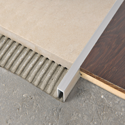 П - Образный алюминиевый профиль с трёхслойным анодированным покрытием. Применяется для соединения настенных и напольных покрытий, разграничивающий две керамические (керамогранитные) плитки, мозаики или другие покрытия находящихся на одном уровне. Материал профиля стоек к химическим воздействиям моющих средств и перепадам температур. Применяется для наружных и внутренних работ.